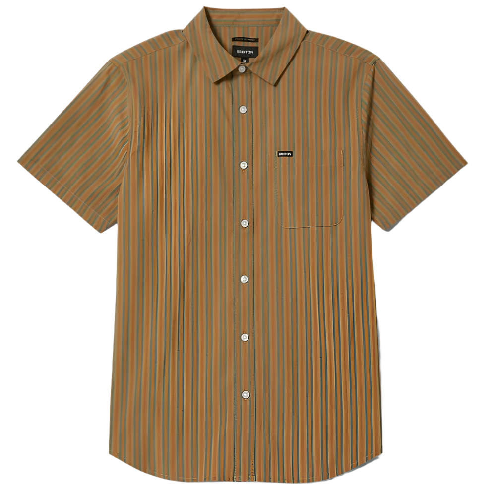 Brixton Charter Stripe SS Button Up | Rustic Caramel Night Sage