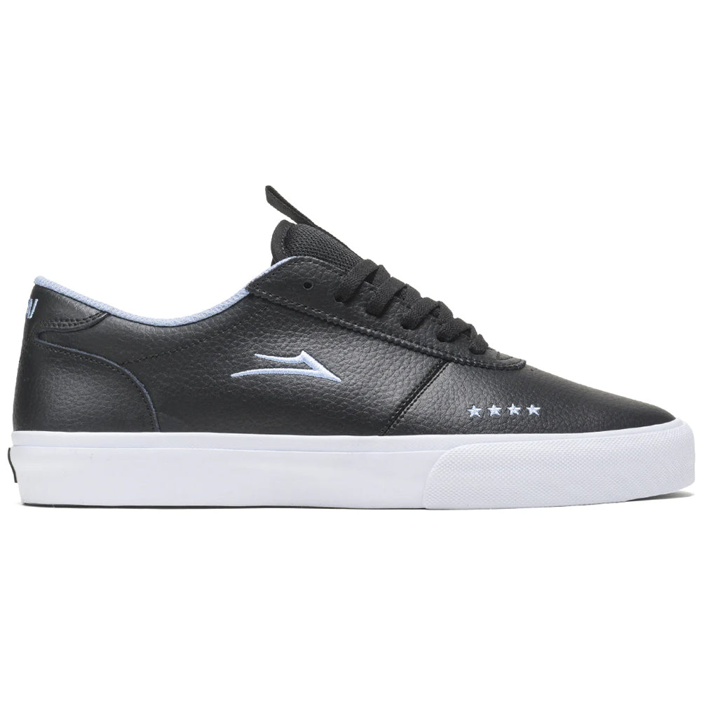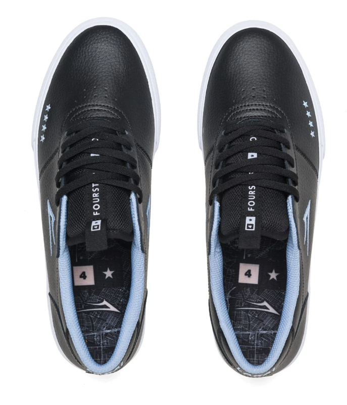 The Lakai x Fourstar Manchester is more sophisticated in a clean all black pebble leather. The branding is elevated with embroidered micro Flare on the side and Fourstar logo on the toe. Translucent light blue outsole.