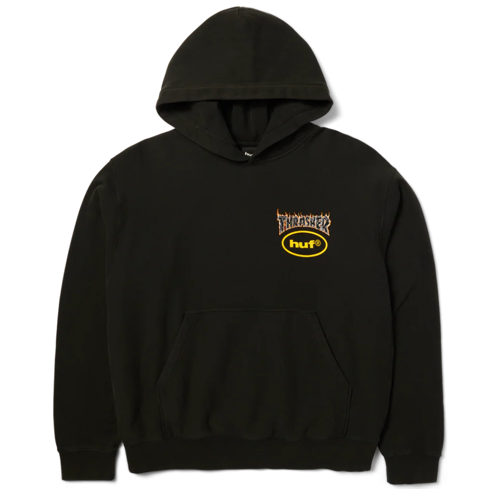 Huf X Thrasher Meltdown Heavyweight Hood | Washed Black
