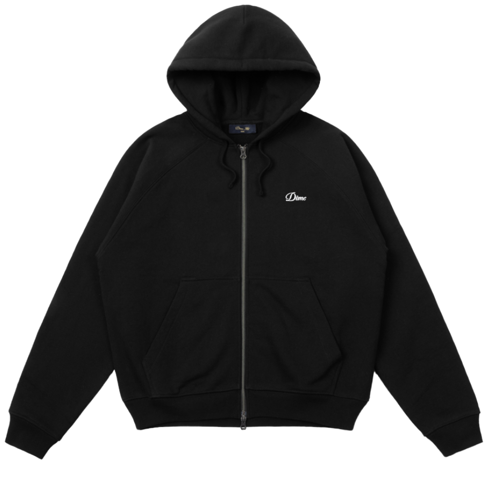 Dime Cursive Small Logo Zip Hoodie | Black