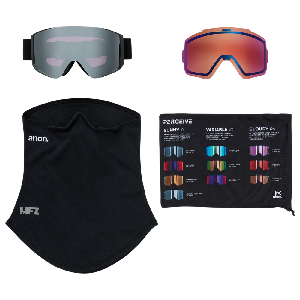 The Anon Sync Goggles offer the terrain-defining clarity of Perceive optics and the convenience of our M-Fusion magnetic latch system to secure and guide lenses into place. Full-perimeter venting ensures maximum airflow for a clear, fog-free view in all conditions. They are over the glass compatible for wearing with eyeglasses and include a bonus lens for cloudy conditions, an MFI® face mask, plus a microfiber bag for storage and lens cleaning.