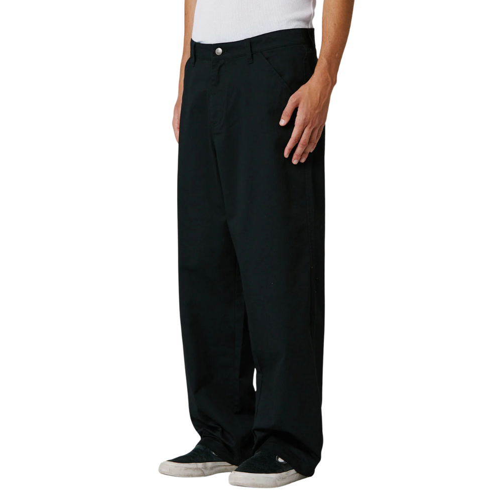 Designed by FORMER founder Dane Reynolds, the Reynolds Work Pant is our Baggiest pant with a wide silhouette and 19” leg opening. Constructed from a durable 100% cotton twill fabric, featuring a fixed waist, signature Crux logo woven label on back pocket, double workwear pockets, and FORMER branded metal shank button.