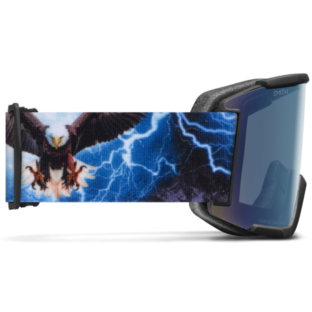 The Squad XL is Smith's largest cylindrical goggle. The massive cylindrical lens is made from molded carbonic-x material so it’s tough, but still has Fog-X technology and ChromaPop™ lens innovation for crystal clear vision. The oversized semi-rimless frame is matched with a new, larger strap; complete with fully integrated strap connection point that delivers the function you need without extra moving parts. Essential technology and maxed out size ideal for the best days of riding.